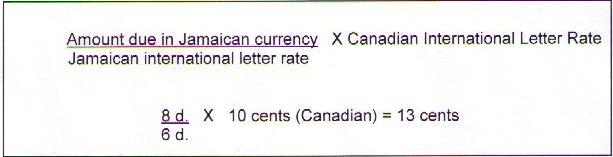 Canada Post Office conversion of Jamaican d. to Canadian cents