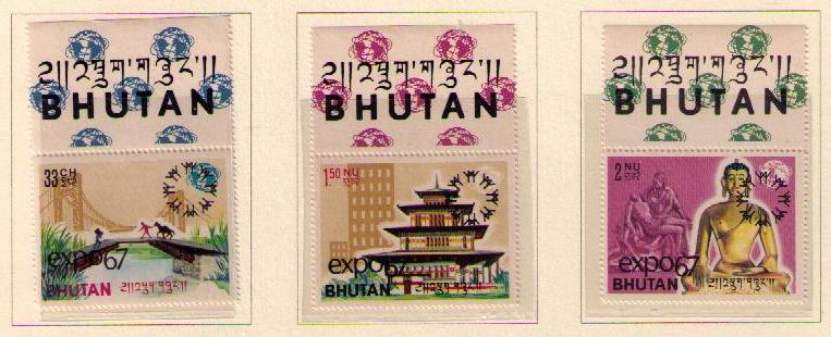 Bhutan overprinted three of the stamps and the souvenir sheet issued for the 1964 New York World's Fair (perforate and imperforate).