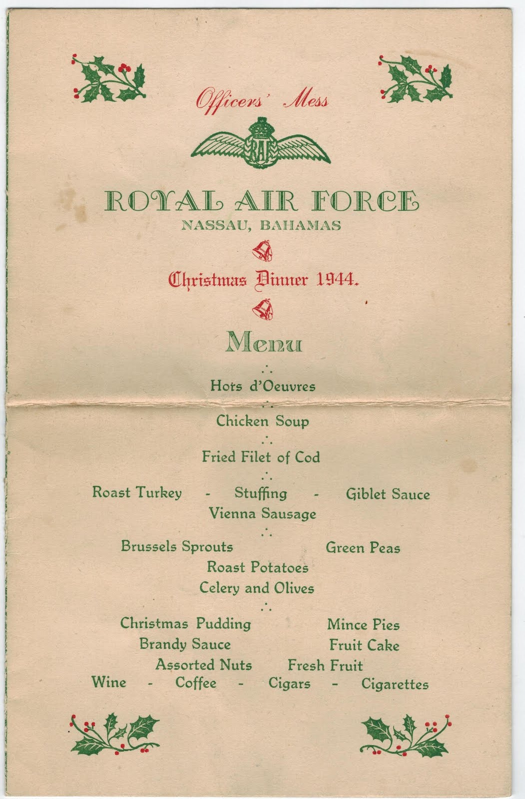 Shown here is the menu for the OTU 111 Officers' Mess Christmas Dinner.