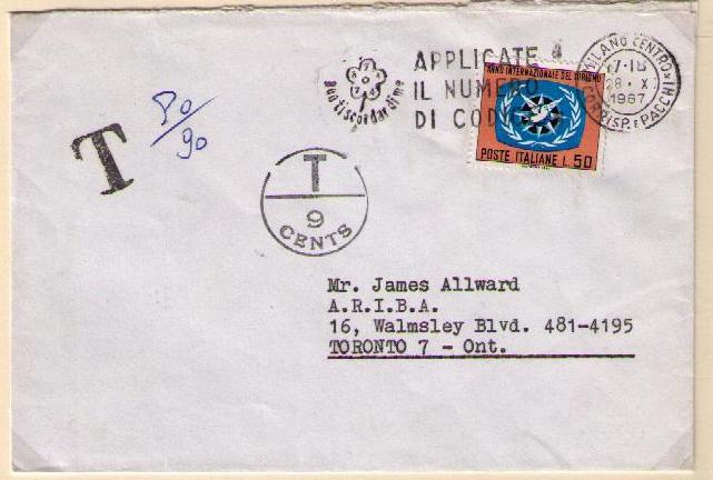 Taxed international mail from Canada during the post-1976 period is difficult to find. Generally, instead of taxing mail with return addresses, the Post Office either returned the mail to the sender for additional postage or advanced the deficient postage.